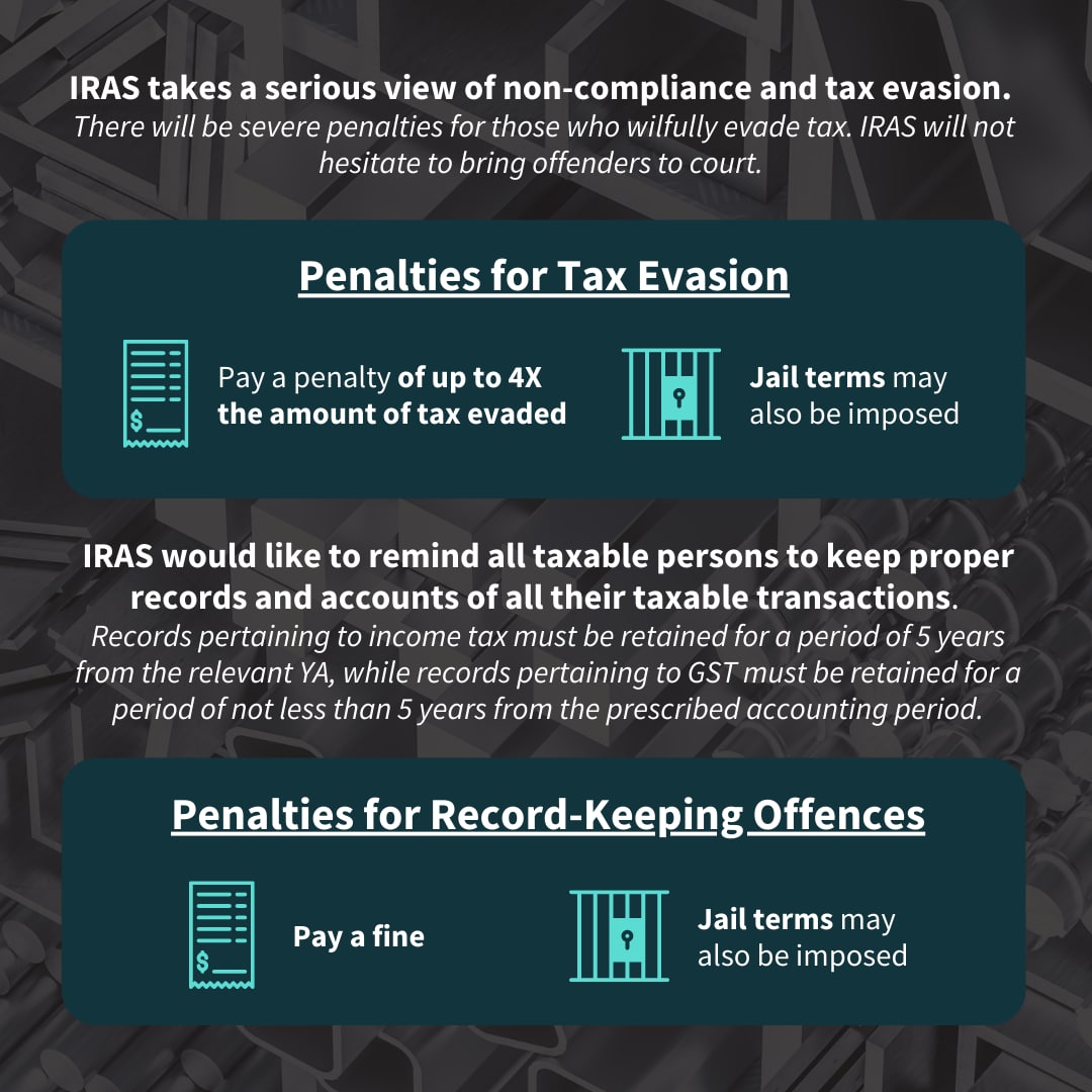 Under IRS Section 7201 Any person who willfully attempts in any manner to evade or defeat any tax imposed by this title or the payment thereof shall. Failure to file a return or supply requested information. You may also face a prison sentence of up to.